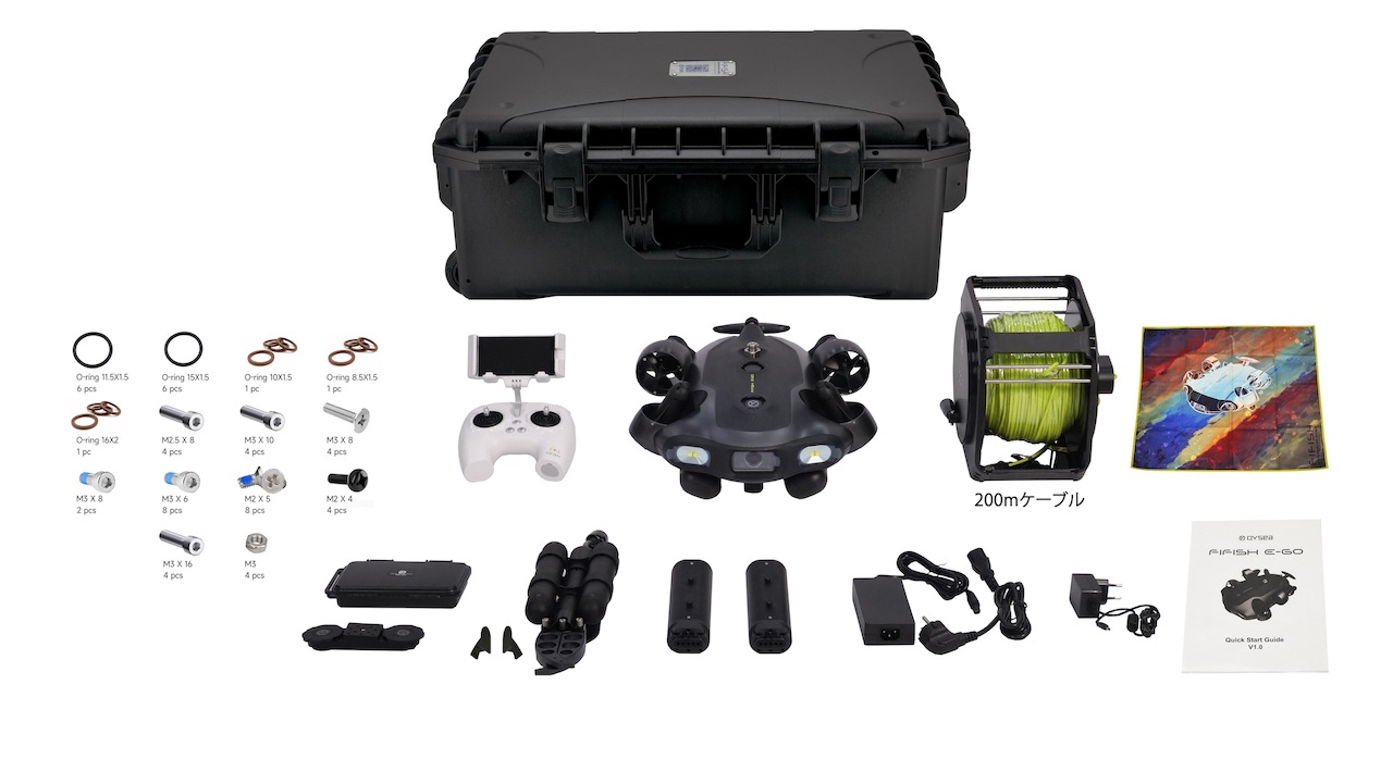 【プロ仕様 受注発注】FIFISH E-GO_BATTERY SET(本体+バッテリー4本+充電ドック+200mケーブル)
