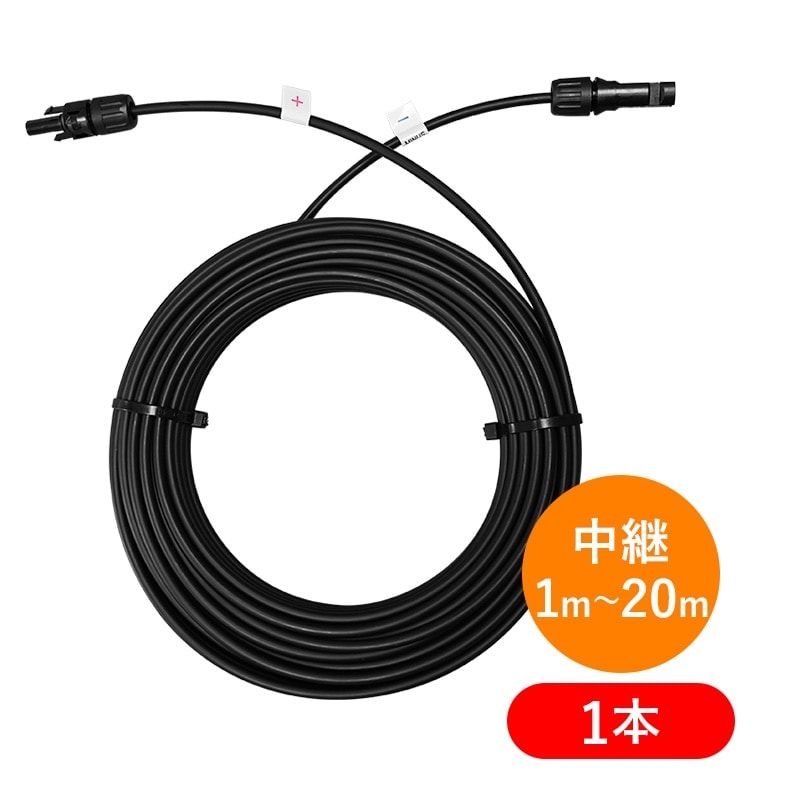 両側MC4コネクタ+と-が1本になったパネル間またはポータブル電源用の中継ケーブルです。