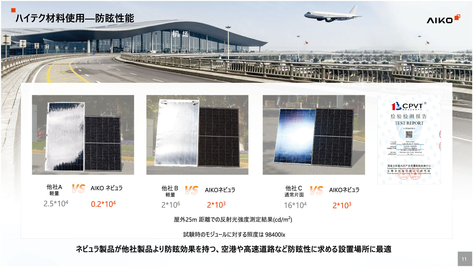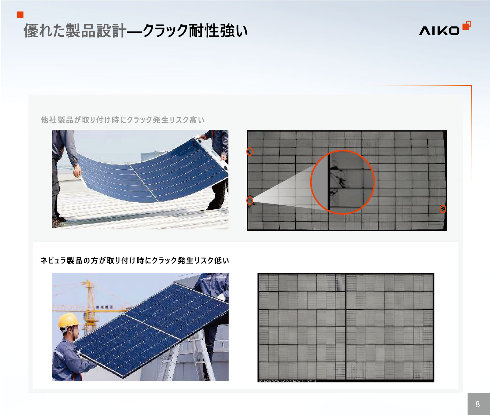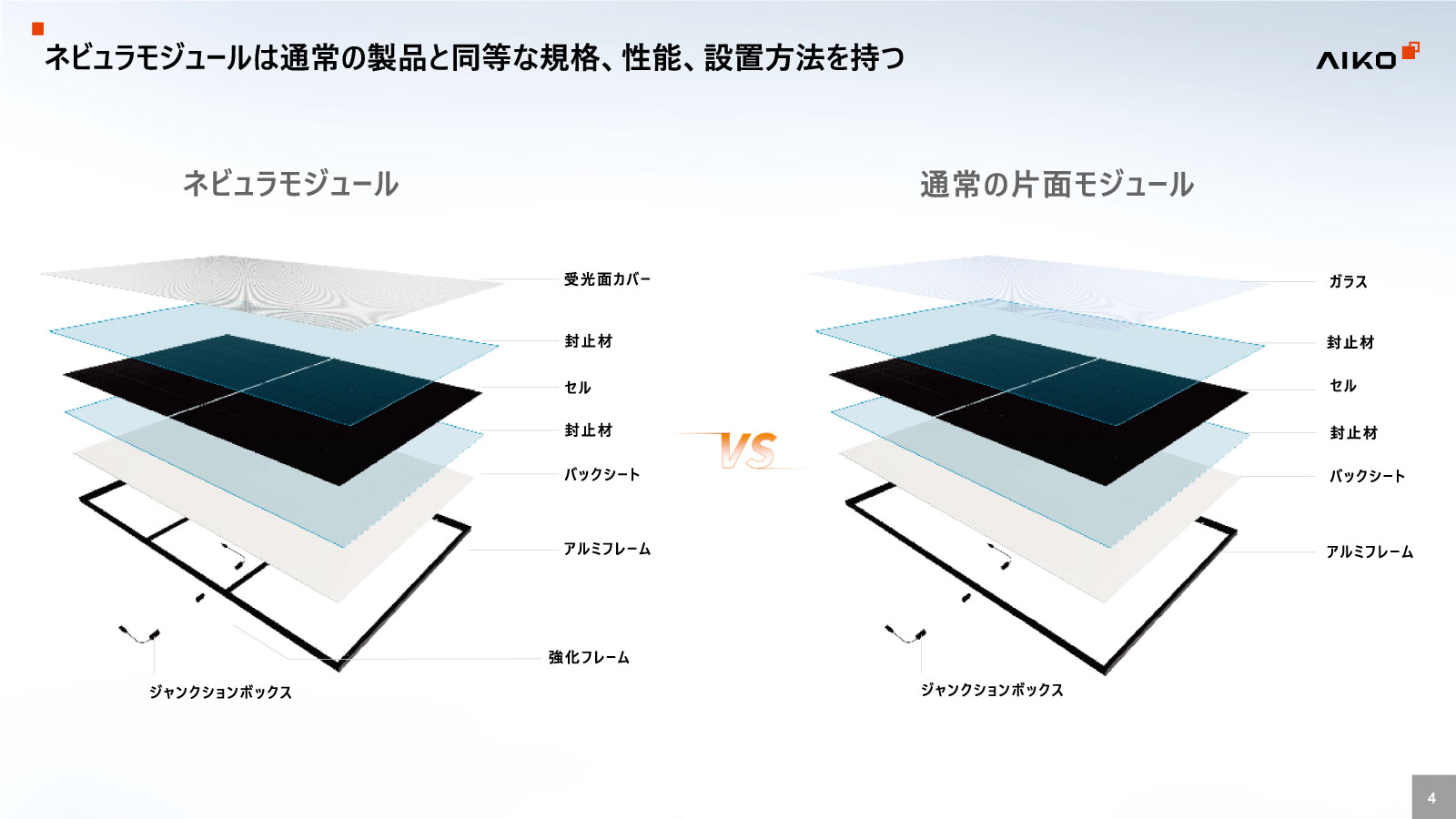 セルから自社生産しているAIKOソーラー社(中国)の単結晶445WのABCモジュール。