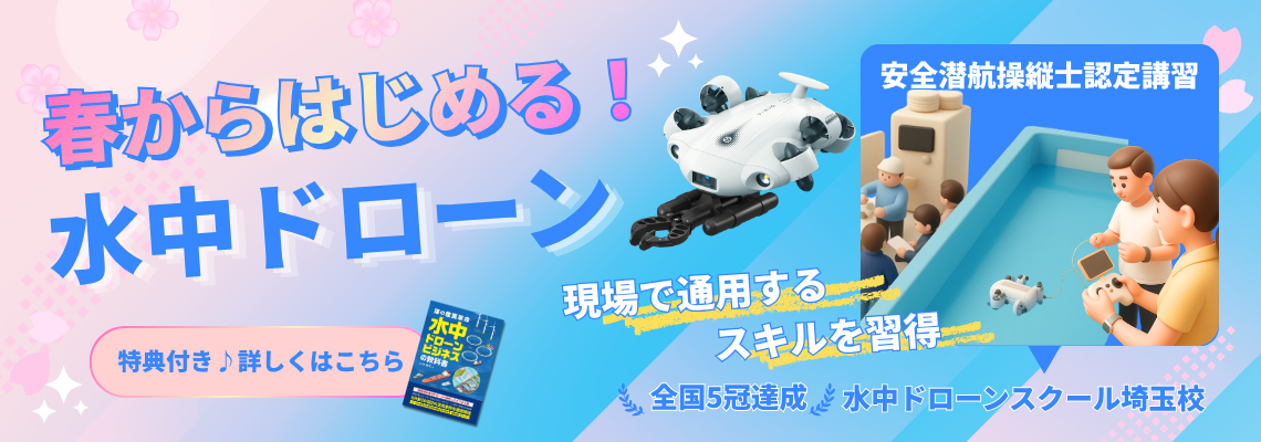 安全潜航操縦士認定講習を組み合わせた、これから始める方におすすめのセットです。【特典あり🌸】春から始める水中ドローン活用セット