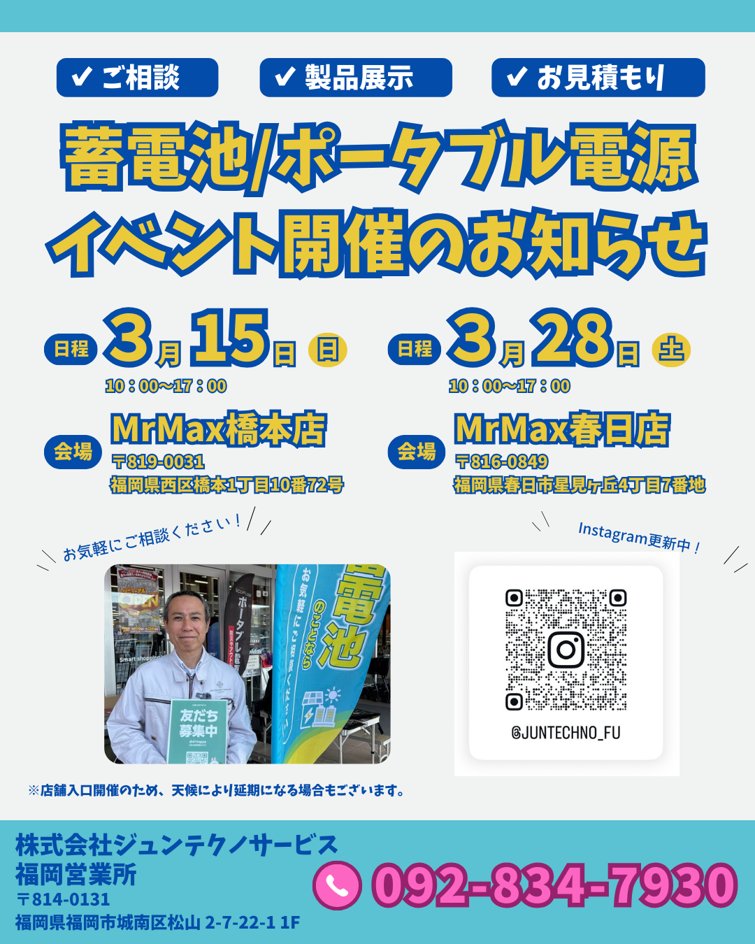 MrMax春日店にて、蓄電池/ポータブル電源のイベントを開催いたします。