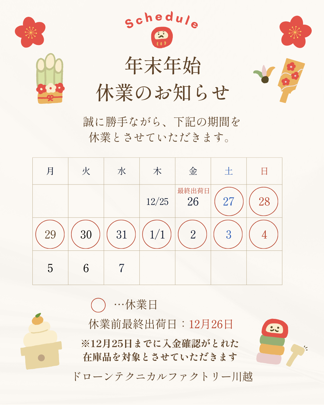 いつもドローンテクニカルファクトリー川越をご利用いただきありがとうございます。
