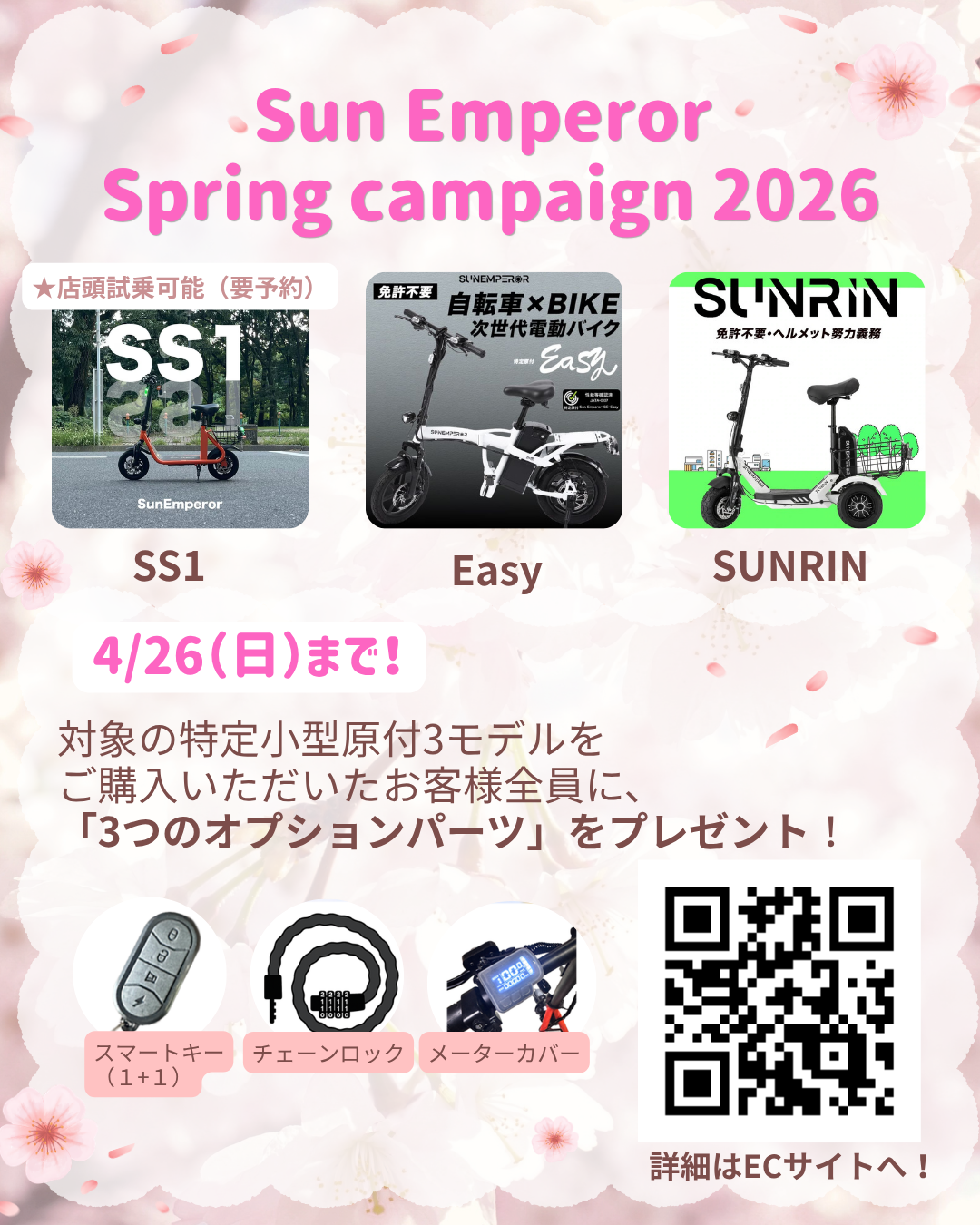 新生活が始まるこの春、特定小型原付”SS1””Easy””SUNRIN”をご検討中の皆さまに、